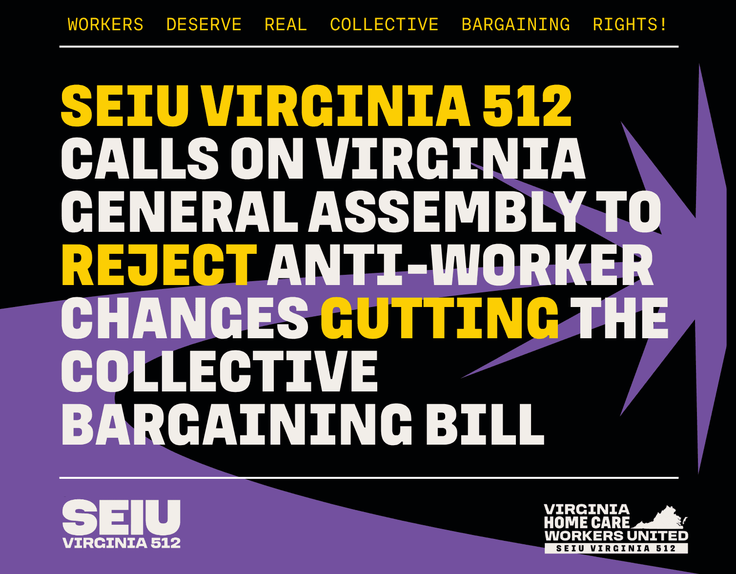 SEIU Virginia 512 calls on VA legislators to reject Gov. Spanberger’s changes to landmark collective bargaining legislation.